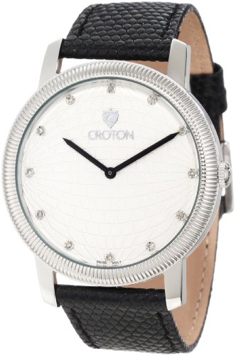 Review Croton Men's CN307298BSSS Diamond Accented Light Silver Textured Dial Black Lizard Leather Watch by webmaster.